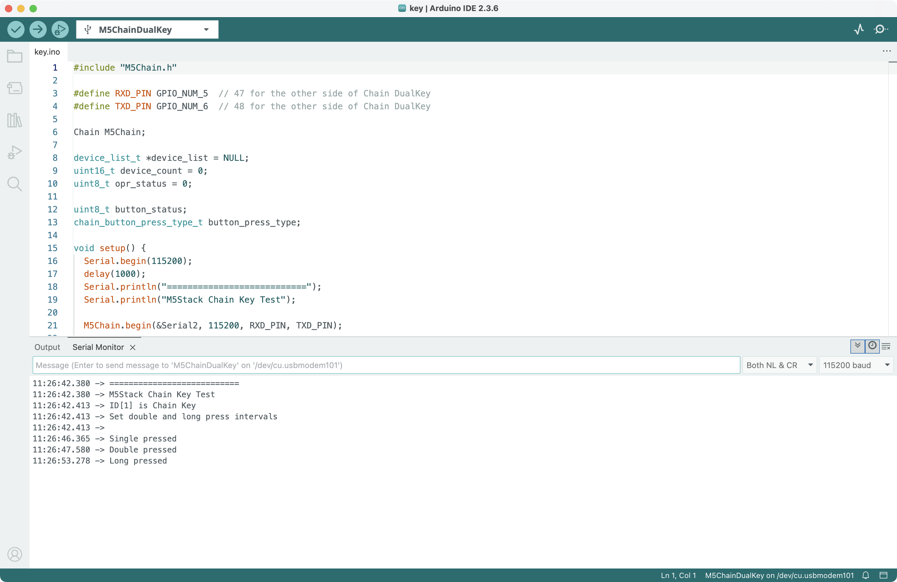 Serial.println("M5Stack Chain Key Test");