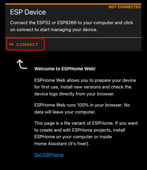 CONNECT to connect to the device.