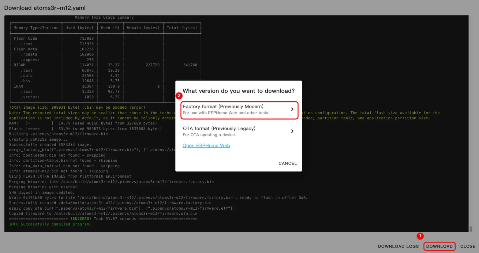 SAVE and INSTALL in the top-right corner, then choose Manual Download in the popup.