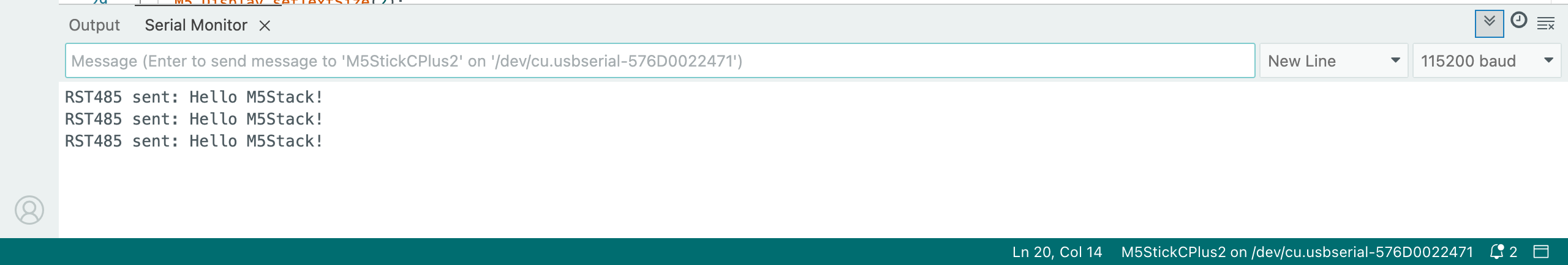 Serial.println("RST485 sent: Hello M5Stack!");