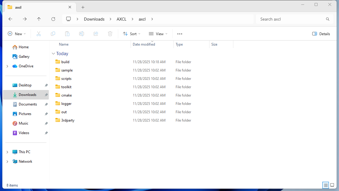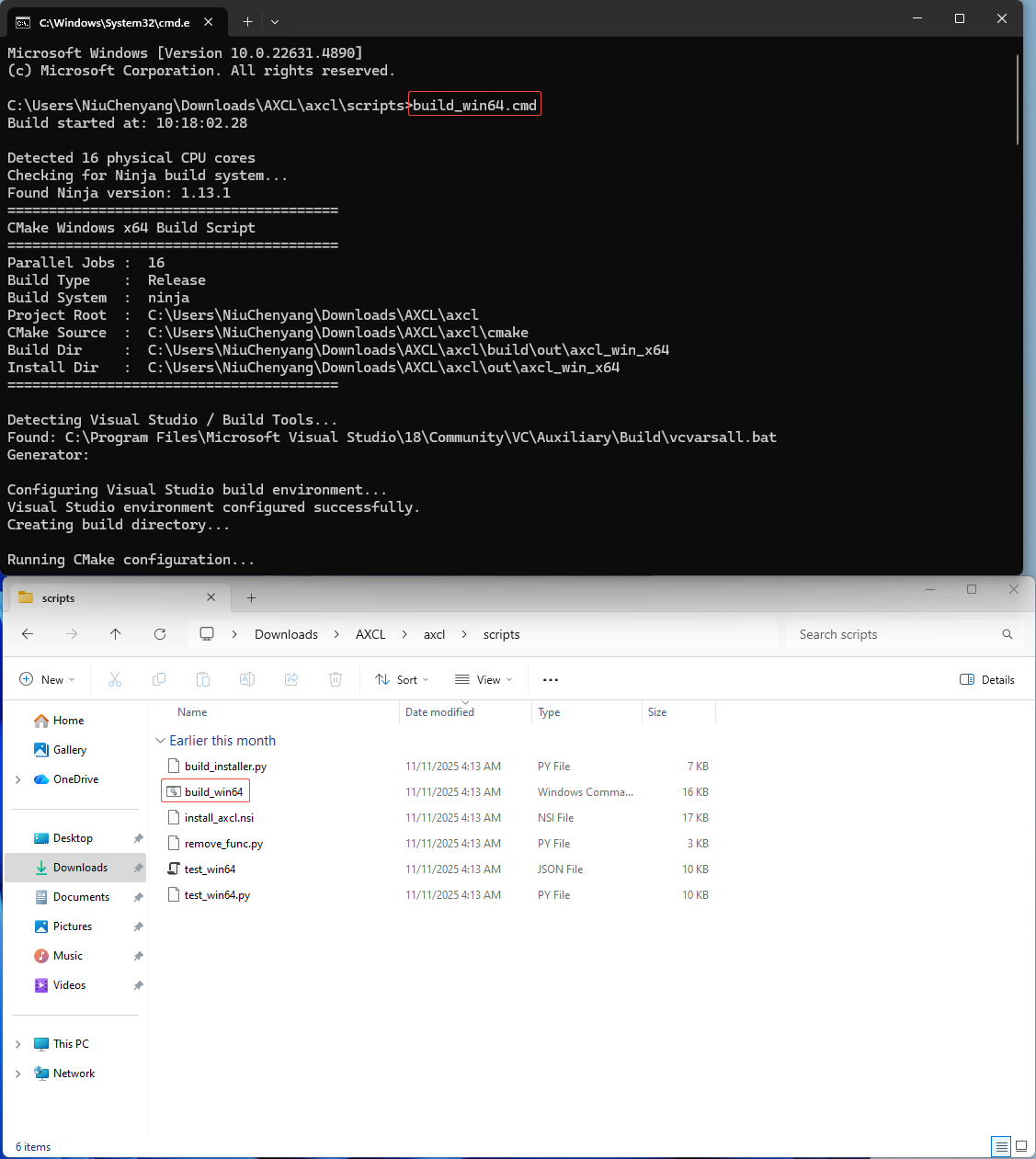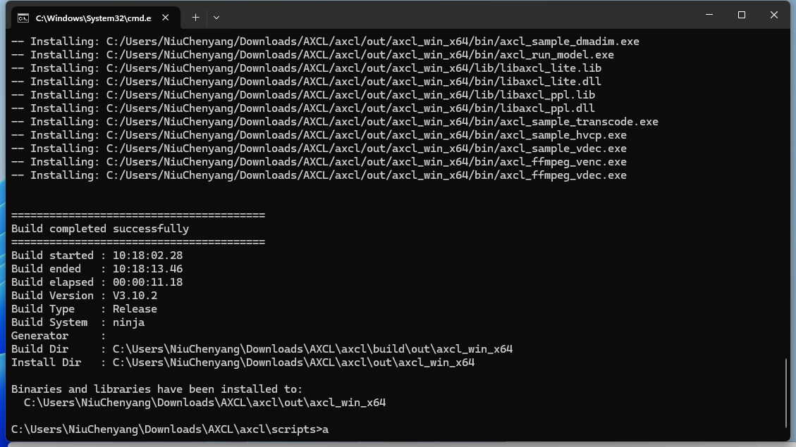 Go to AXCL\axcl\scripts and execute build_win64.cmd to start compilation.