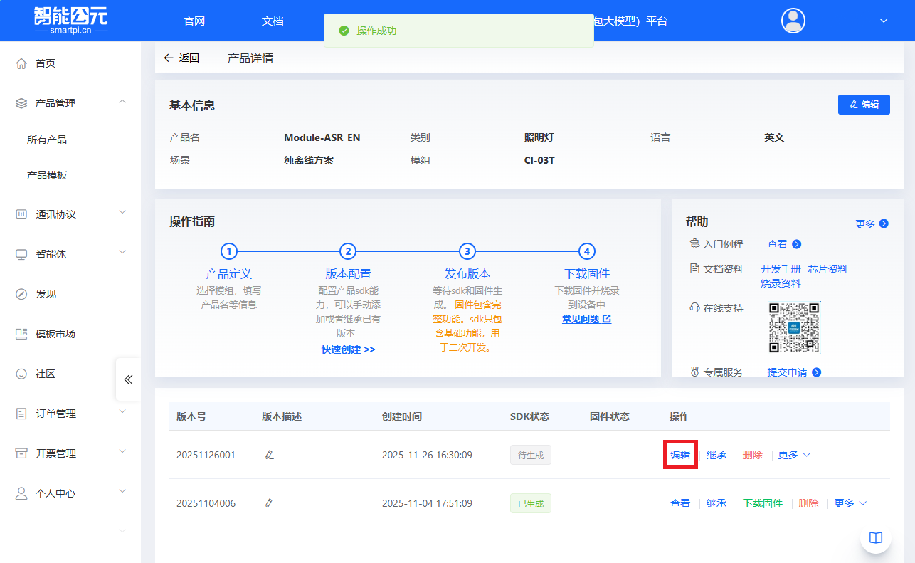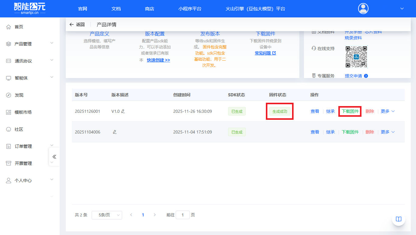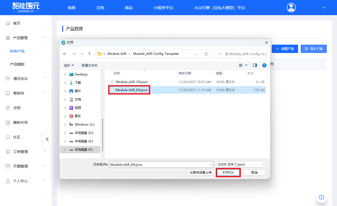 Download the product configuration template (.json): The links below include both Chinese and English versions of the configuration template. Choose the template that matches the language you will use; you can further customize the firmware based on the template.