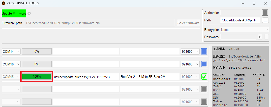 Power the Module ASR module and use the wake phrase Hi M Five. If it responds with I'm here, the firmware flashing was successful.