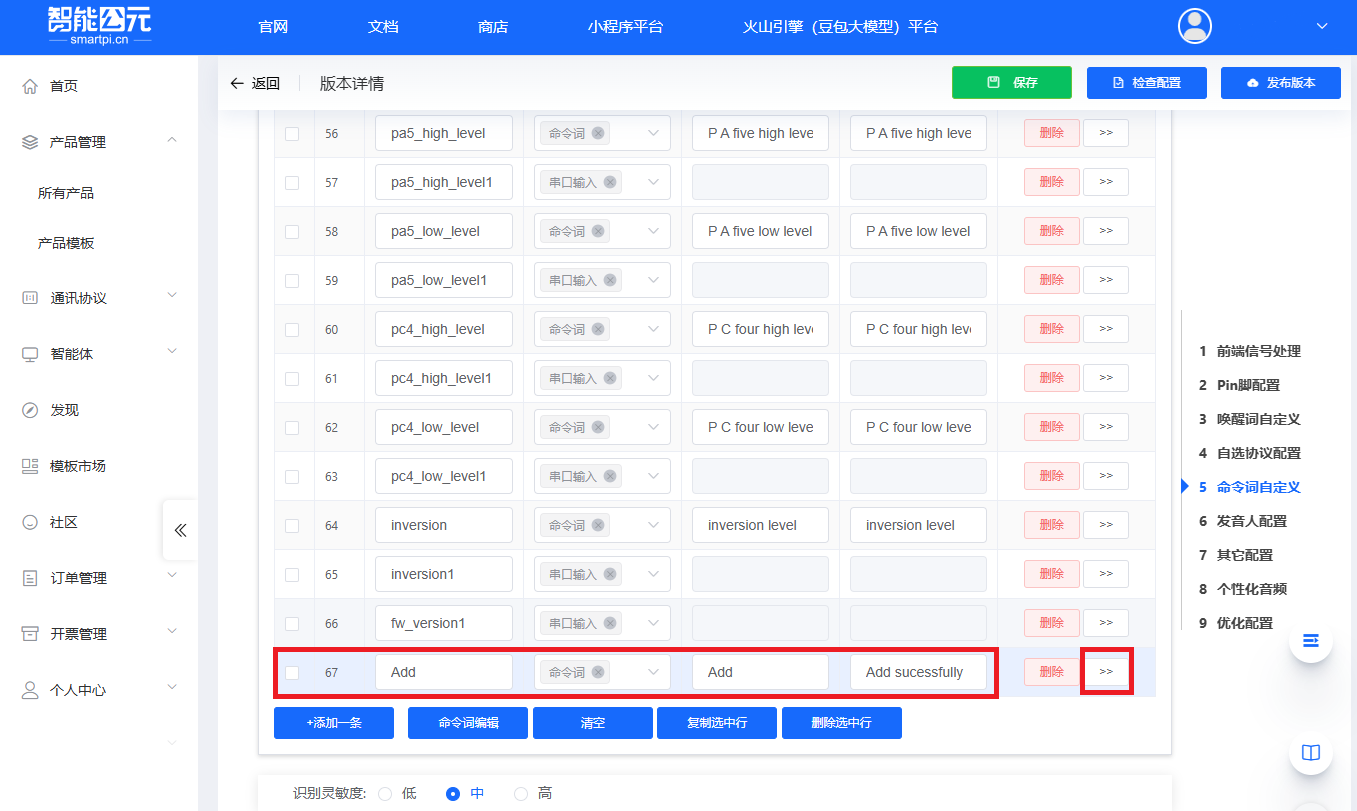 Edit button to enter the firmware configuration page. Scroll to the Command Words Customization option and click + Add to create a new command.