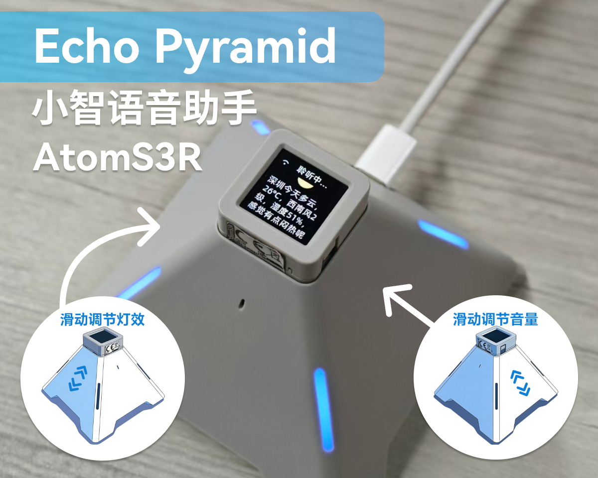 This tutorial will use the AtomS3R device + Echo Pyramid hardware combination to build a personal voice assistant application by burning the Xiaozhi AI Voice Assistant firmware via M5Burner.