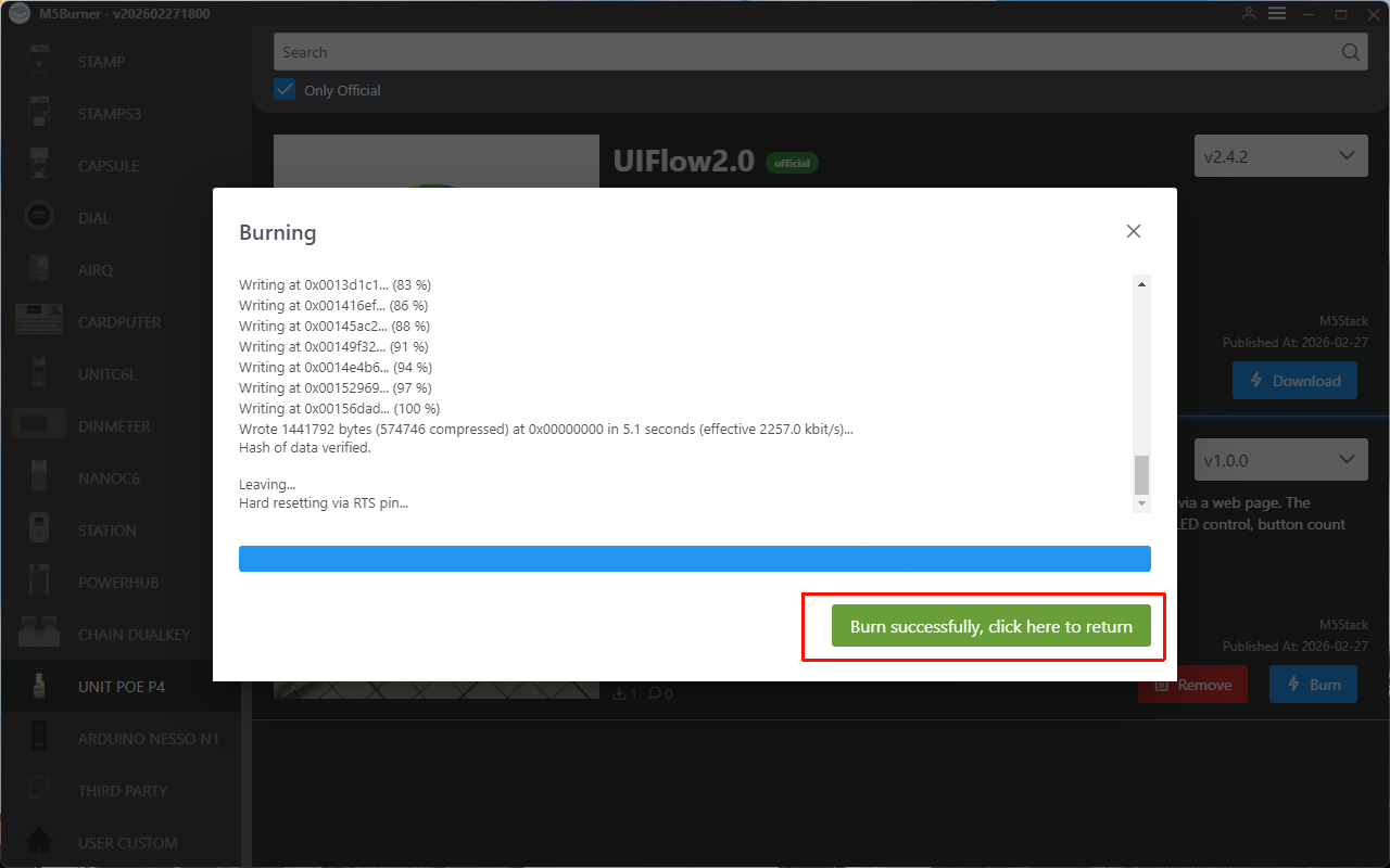 When the device works abnormally, you can try reflashing the factory firmware to check whether there is a hardware fault. Refer to the following tutorial. Use the M5Burner firmware flashing tool to flash the factory firmware to the device.