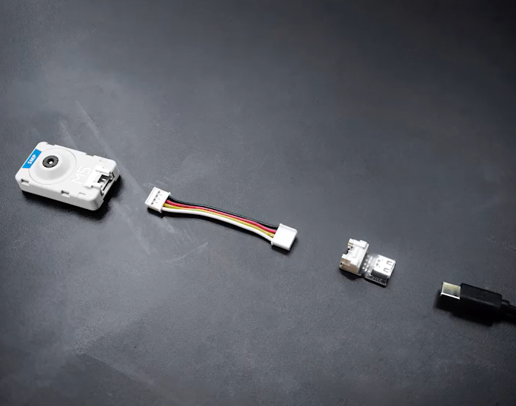 Connect the camera module to the 4-pin cable → Plug the other end of the cable into the USB adapter → Use a USB-C cable to connect to a computer or power supply → Once powered on, the device is ready for firmware flashing or data transmission.