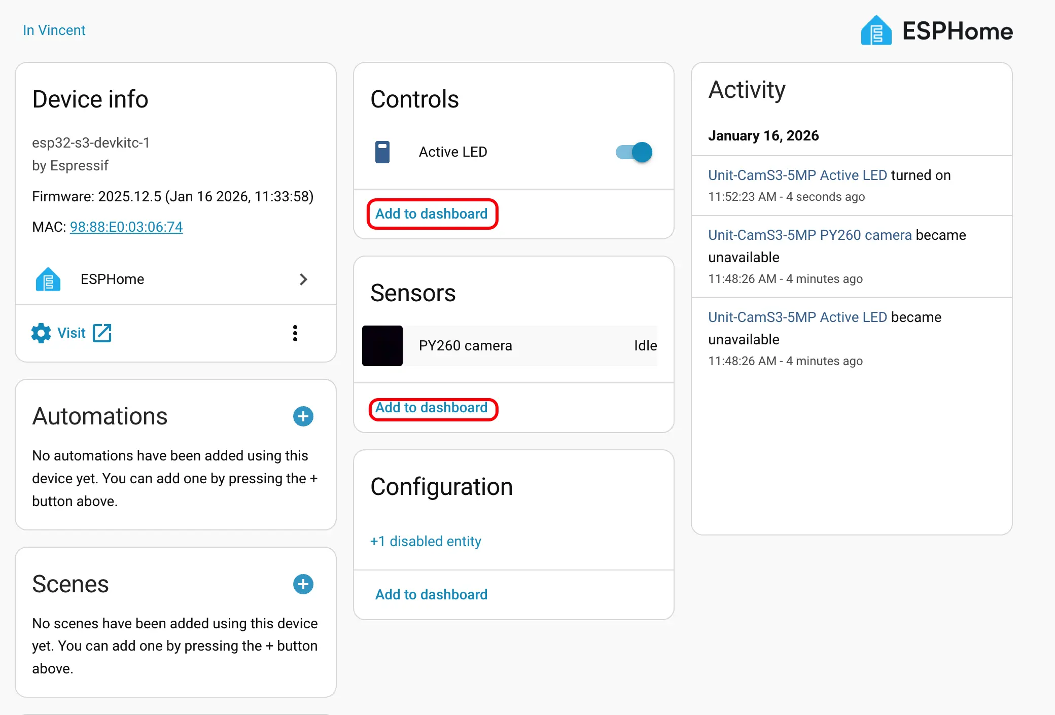 Unit CamS3-5MP is a compact ESP32-S3–based Wi-Fi camera module featuring a 5MP PY260 sensor (2592×1944, 88° DFoV), 8MB PSRAM, and 16MB flash. It supports microSD storage, PDM audio recording, USB firmware update/serial communication, and onboard download headers. With built-in firmware for image capture and EzData cloud upload, it is ideal for remote monitoring, time-lapse photography, and industrial automation.