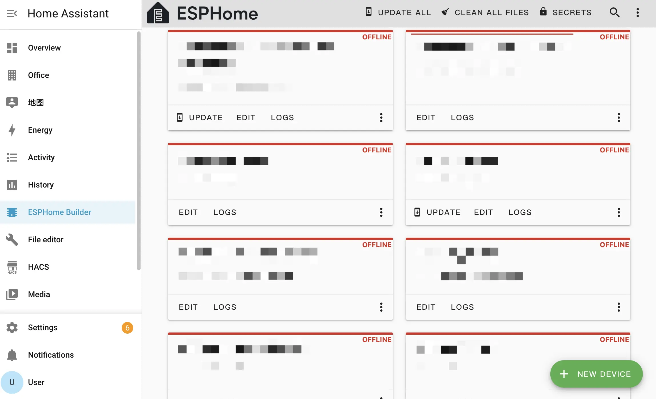 After adding, the device will appear under the ESPHome integration along with its entities and dashboard.