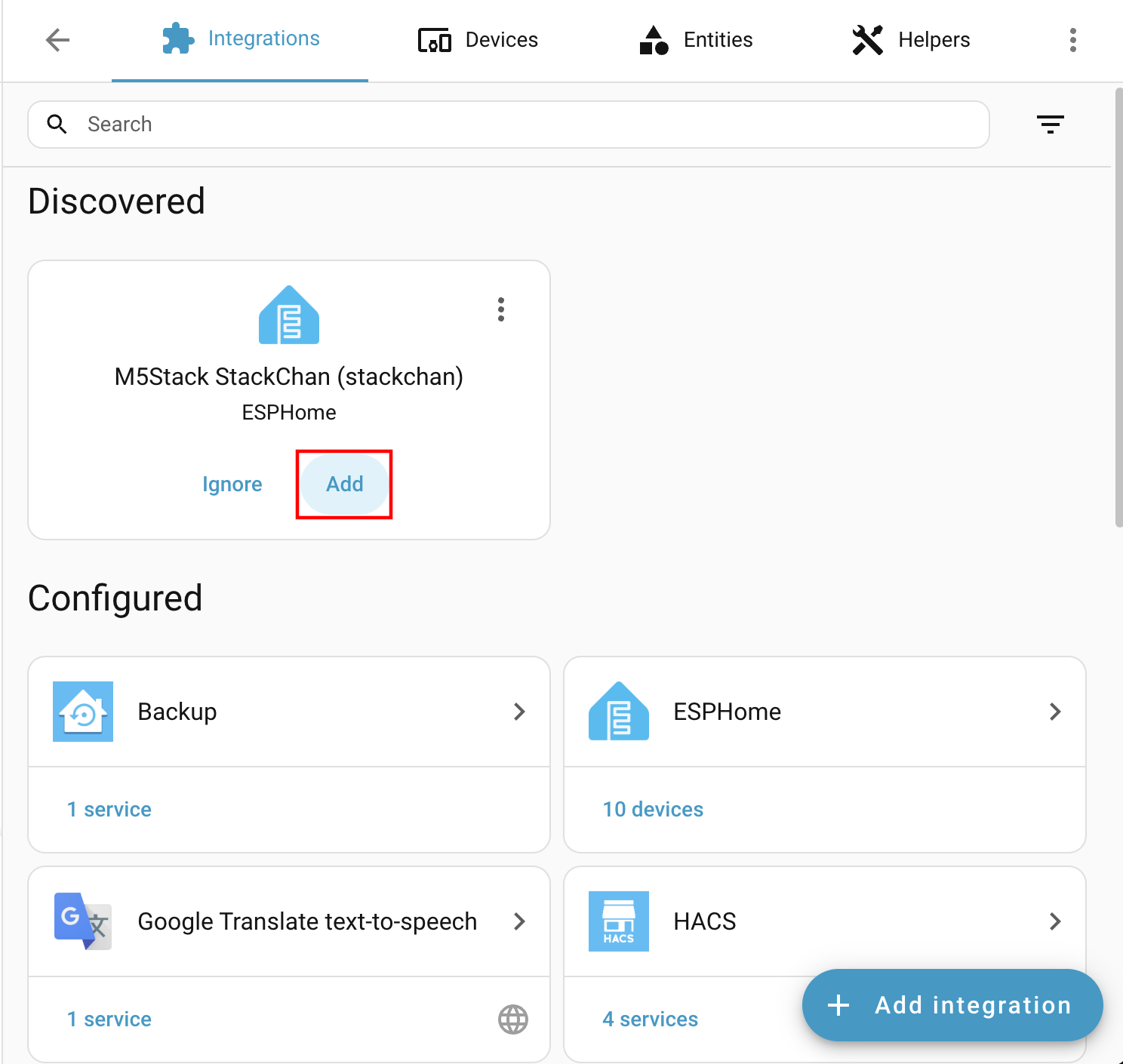 After flashing and rebooting, the device will automatically connect to Wi-Fi. Home Assistant on the same LAN should prompt a new device discovery. Check Settings -> Devices & services.