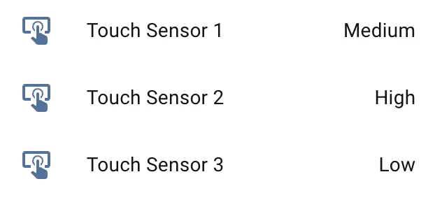 Touch results are reported to frontend sensors as HIGH, MEDIUM, and LOW, corresponding to high, medium, and low intensity. No touch means no touch was detected.