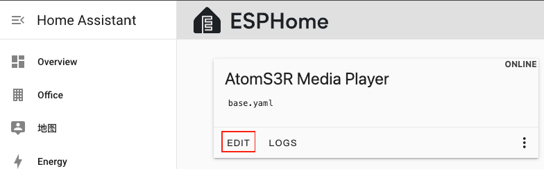 ); After editing the YAML configuration, click SAVE in the top right, then click INSTALL.
