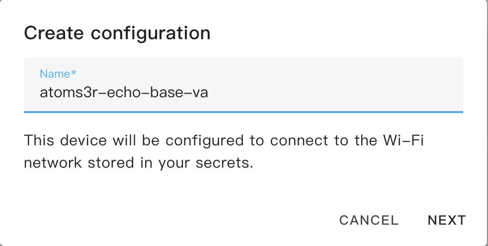 Click EDIT on the newly created configuration and modify settings. (Wi‑Fi settings default to the current HA server; you may override ssid, password, etc., as needed.)