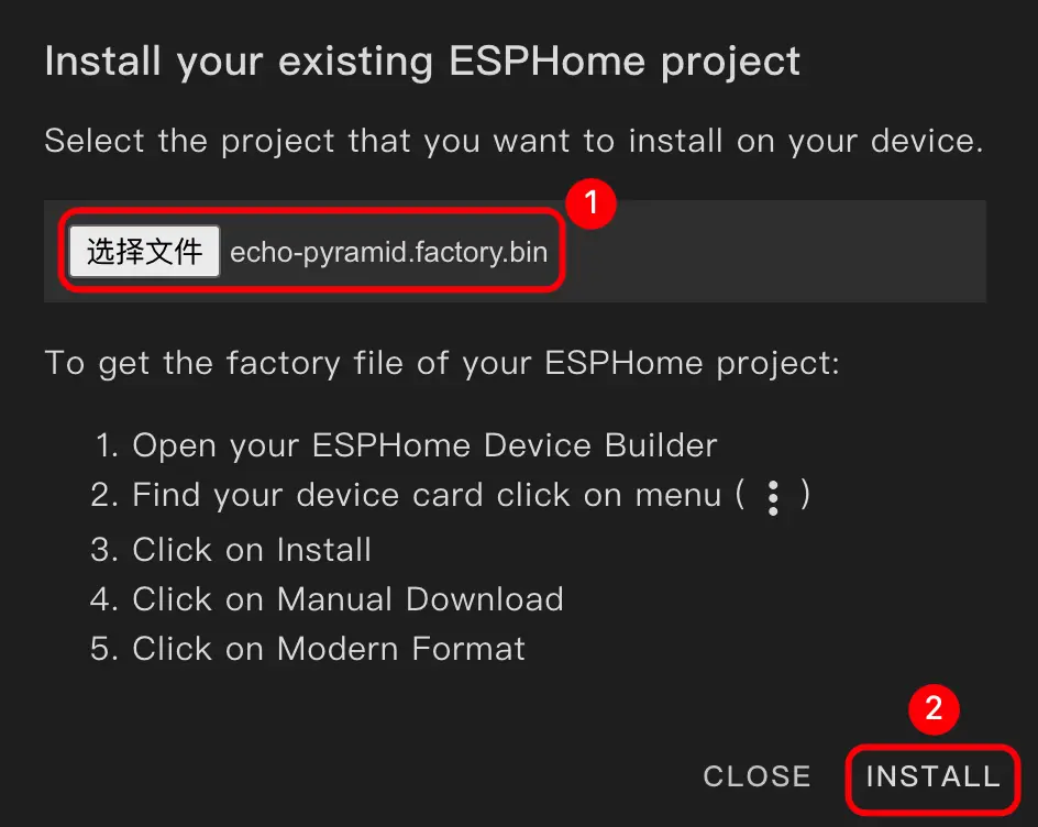 — Connect the device to your host via a USB Type‑C cable. Open ESPHome Web and click CONNECT to connect to the device.