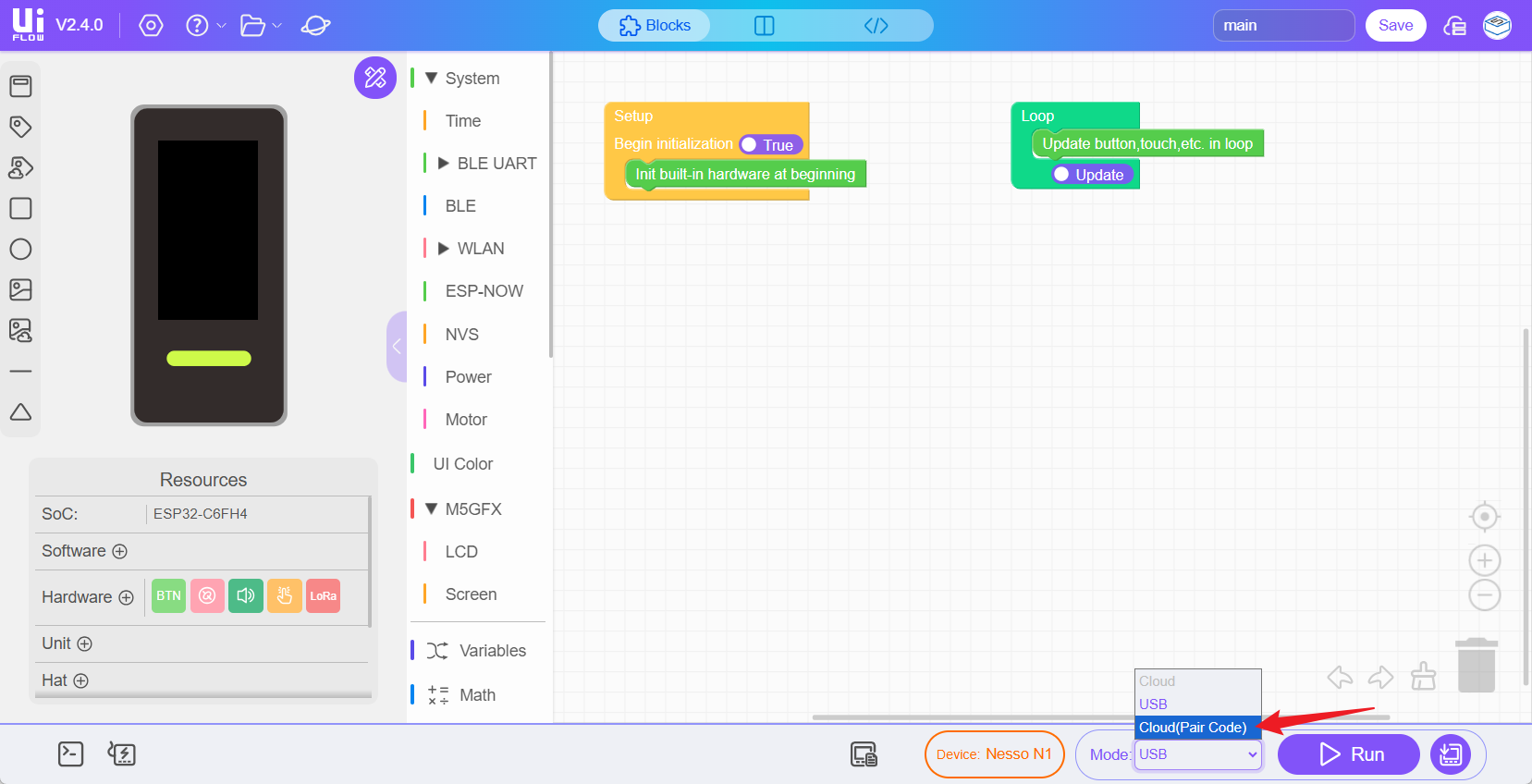 You can connect the device to UiFlow2 via Wi-Fi or USB to enter the programming page. The specific methods are as follows: