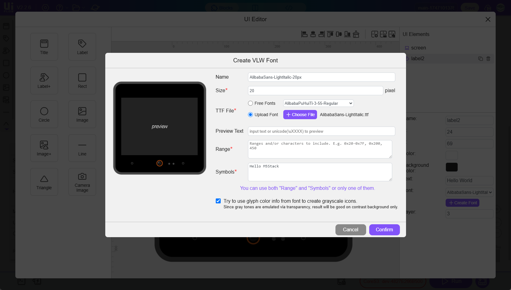 UiFlow2 UI Editor supports external font integration to enable richer design expressions.