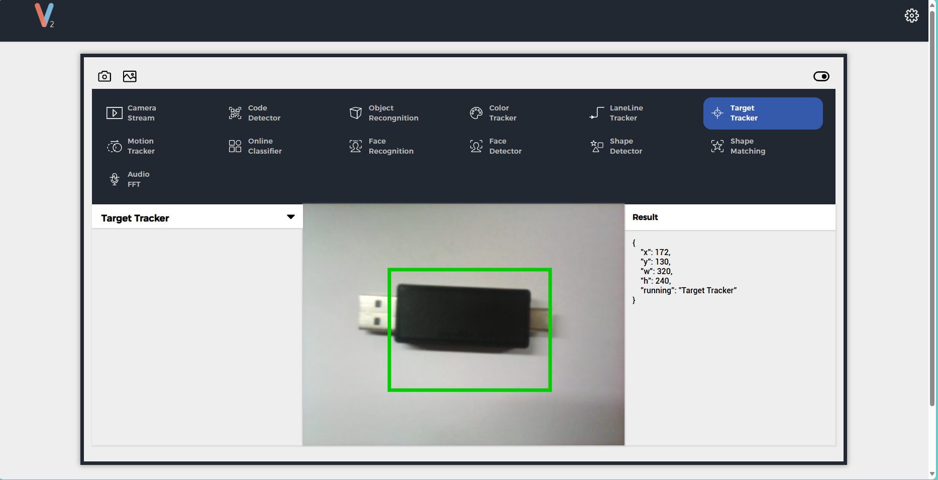 このサンプルプログラムではUnitV2を形状検出機能に切り替えることができます。この機能を使用する前に、背景を1回設定して検出を行う必要があります。ブラウザでドメインunitv2.py