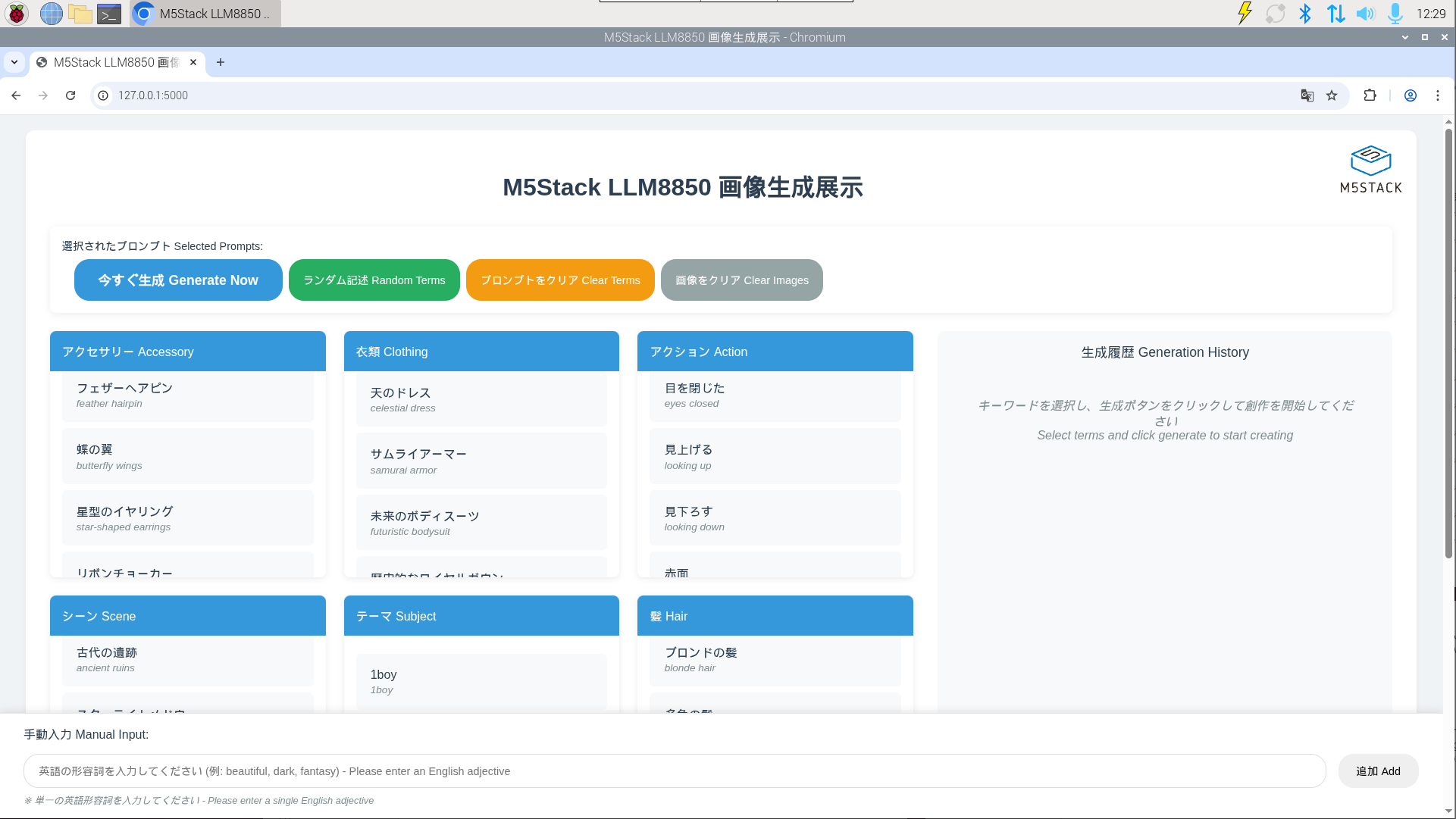生成したいパラメータを選択するかランダム説明を選び、「すぐに生成」をクリック