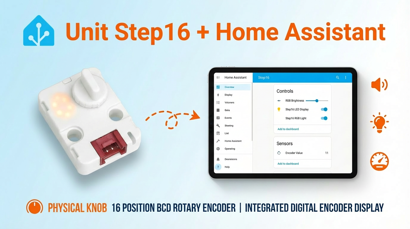 このガイドでは、Unit Step16 16 ビットロータリーエンコーダーコントロールユニットを Home Assistant に統合し、ノブによる数値制御や照明制御を実現する方法について説明します。