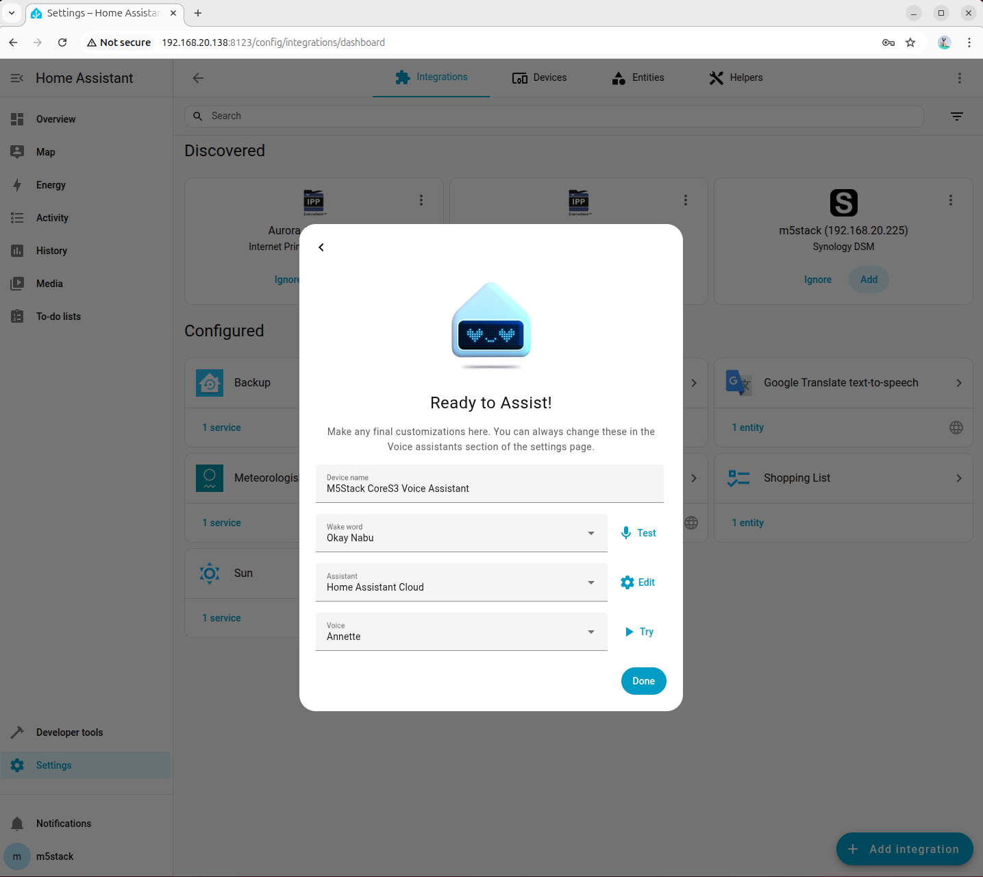 以下のコマンドを使用して Wyoming テキスト音声合成サービスを起動します。AI Pyramid の IP アドレスに置き換えてください: