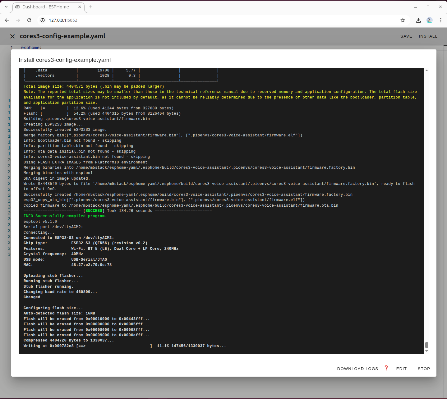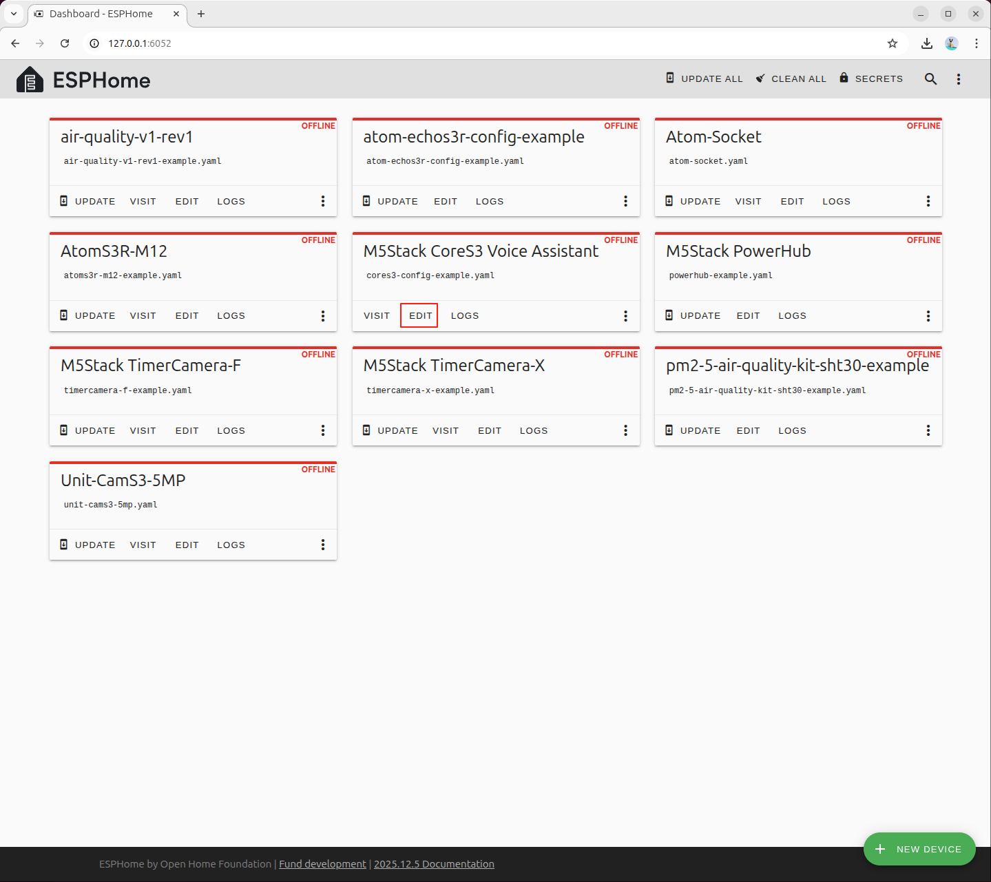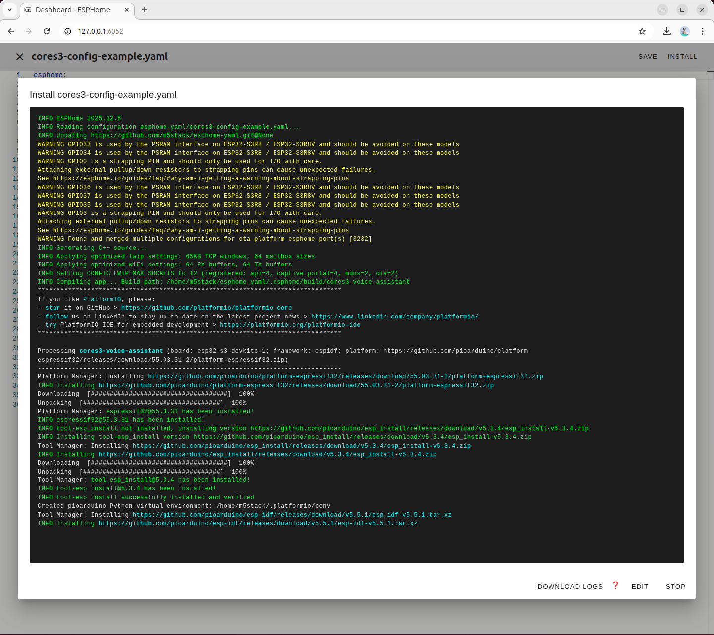 pip install esphome==2025.12.5 git clone https://github.com/m5stack/esphome-yaml.git esphome dashboard esphome-yaml/
