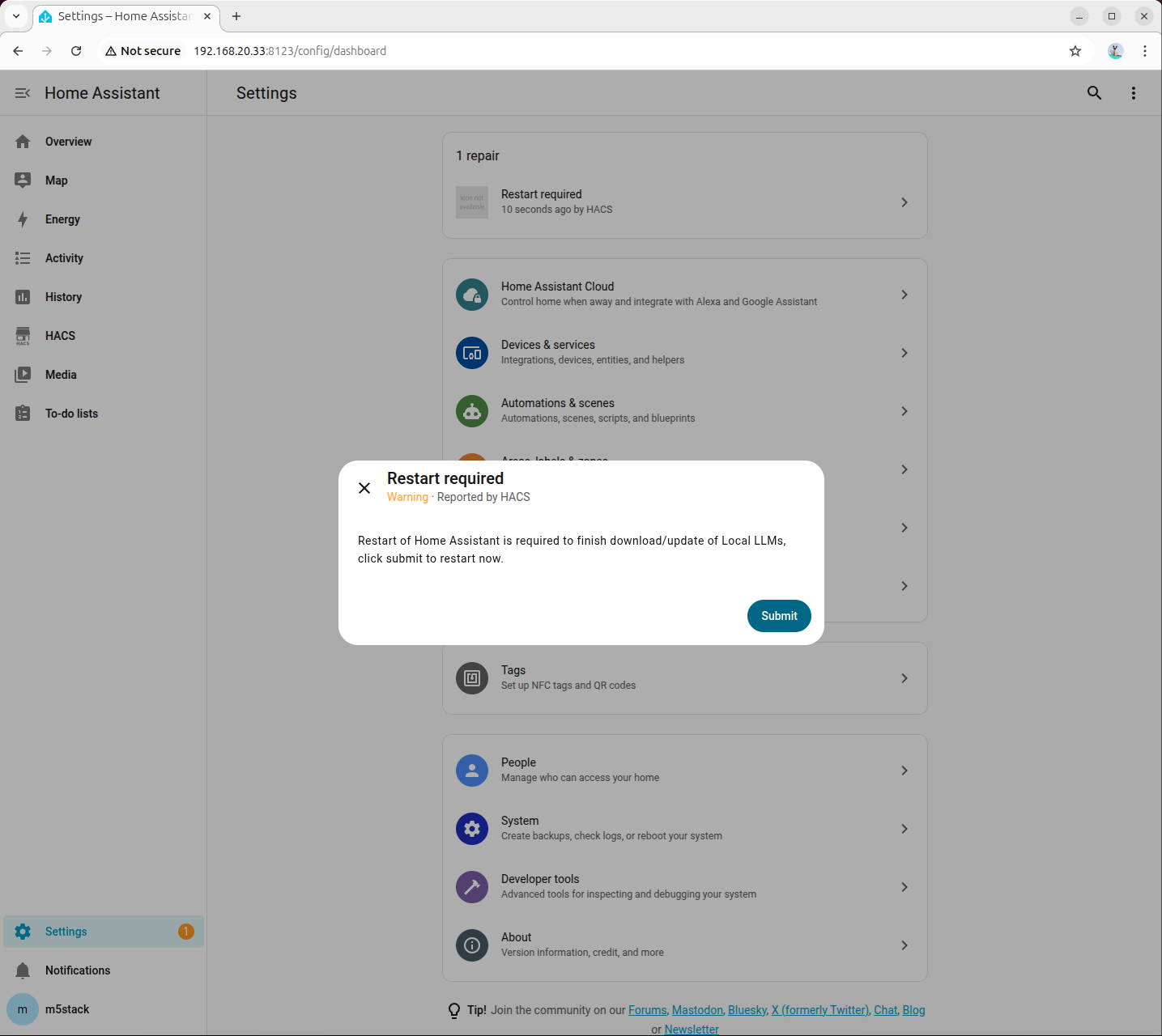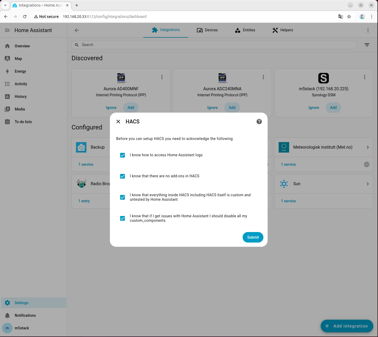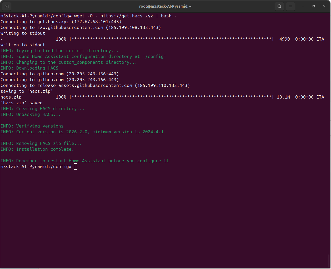docker exec -it homeassistant bash wget -O - https://get.hacs.xyz | bash -