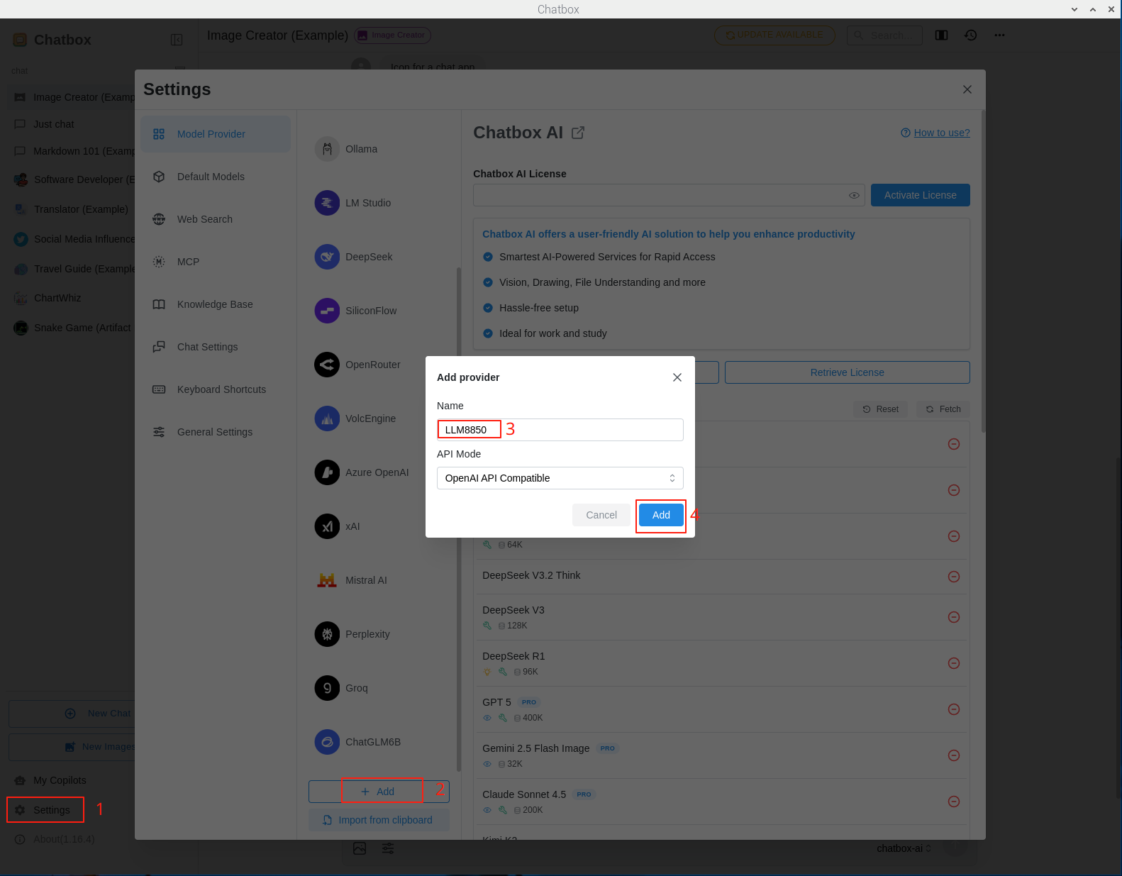 点击设置,添加模型提供方