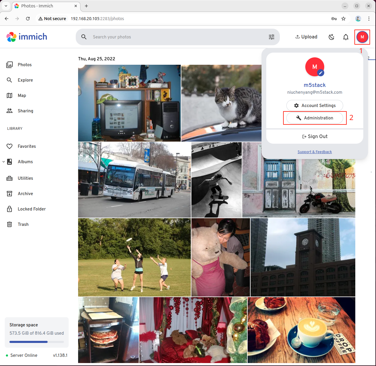 [12/30/25 11:00:06] INFO Application startup complete. 在浏览器中输入 AI Pyramid 的 IP地址和 2283 端口,例如 192.168.20.105:2283