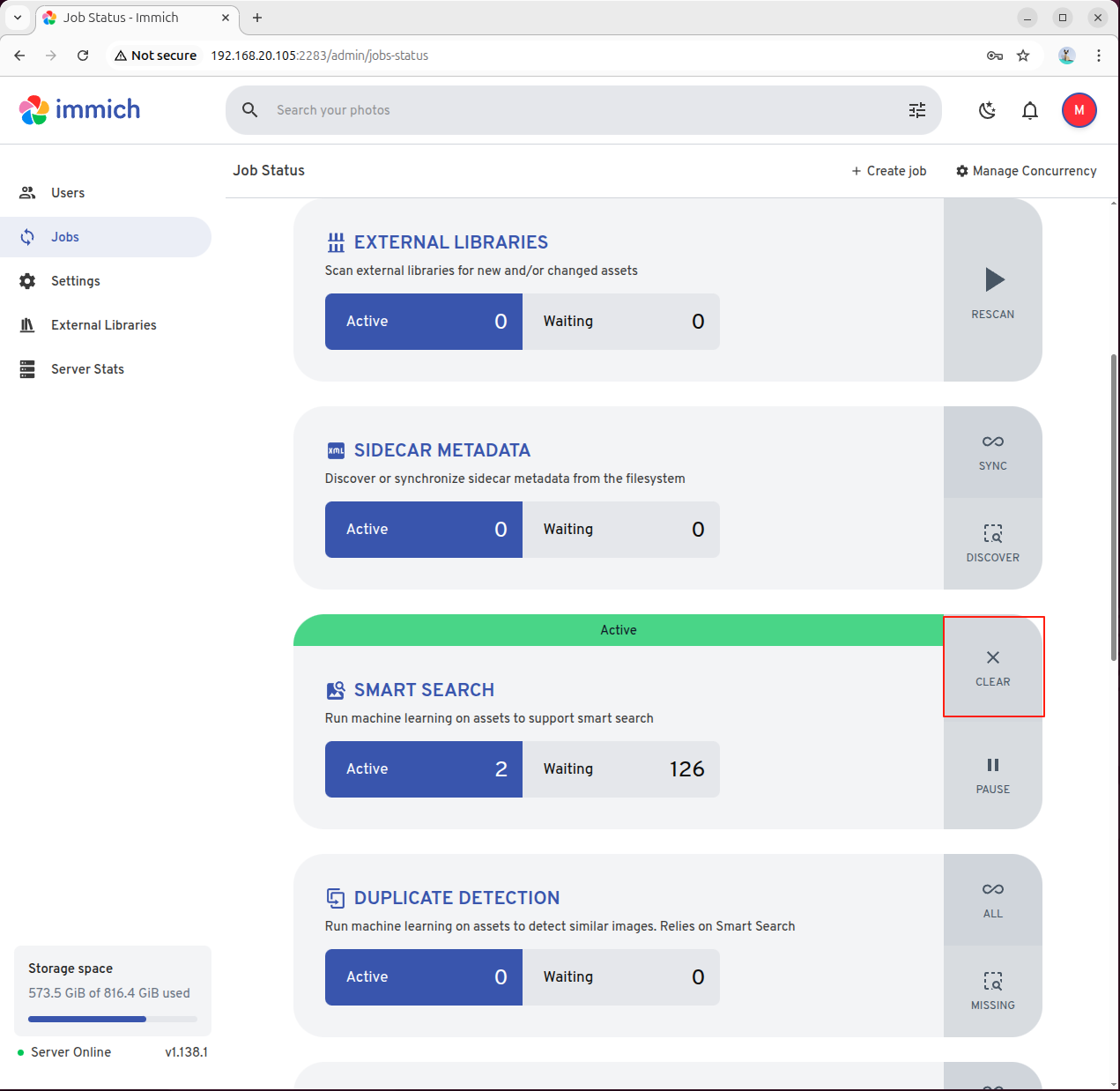 第一次需要手动进入 Jobs 选项,在 SMART SEARCH 中手动触发