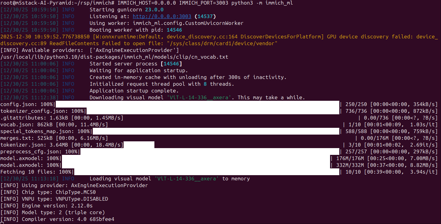 root@m5stack-AI-Pyramid:~/rsp/immich# IMMICH_HOST=0.0.0.0 IMMICH_PORT=3003 python3 -m immich_ml